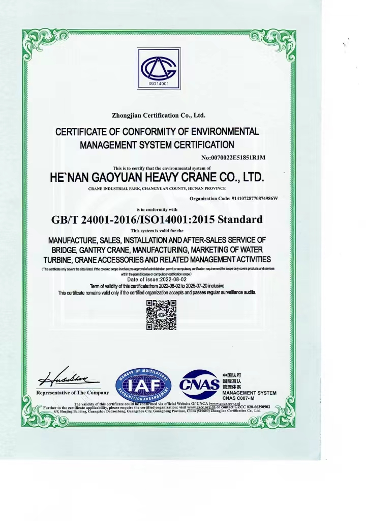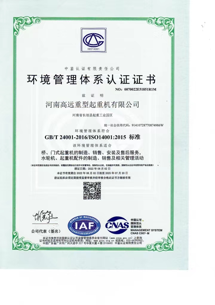環(huán)境管理體系認(rèn)證證書