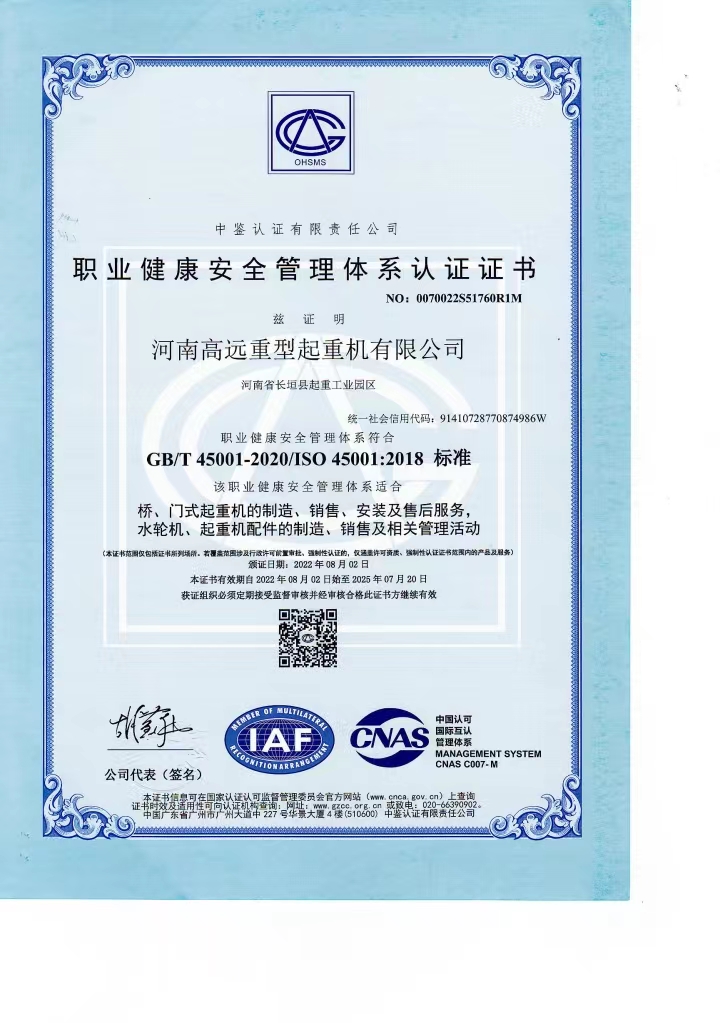 職業(yè)健康安全管理體系認(rèn)證證書